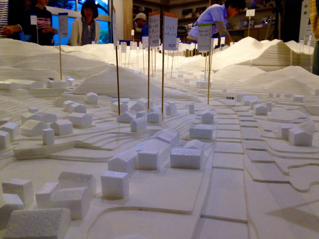 精巧な地形模型には集落の家々も再現