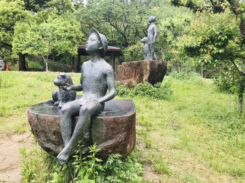 園内には 頼山陽の歌碑➡があったり、さまざまな彫刻が並んでいる➡ ので、ゆ楽しく散策できるが、たまに猪と出会うことがあるので注意。