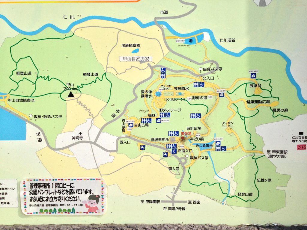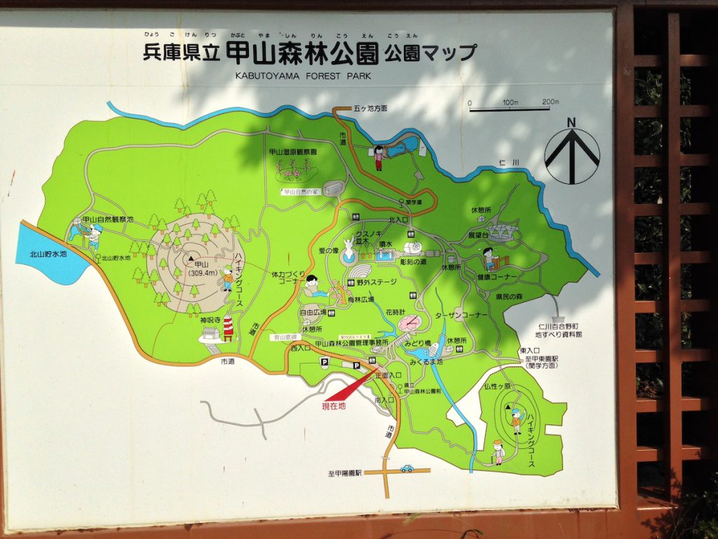甲山森林公園は標高309.4メートルの甲山の大部分とその山麓に広がっている、兵庫県立の公園で1970年11月に開園した。